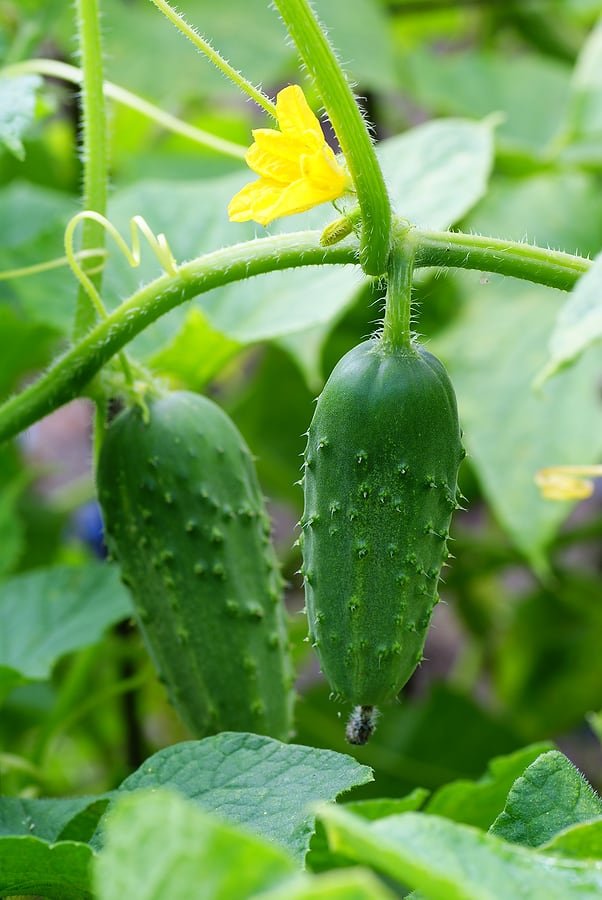 Cucumber vines produce both male and female flowers.